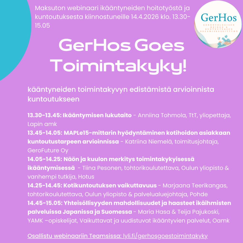 Teemme pohjoissuomalaisen gerontologisen hoidon ja kuntoutuksen tutkimus- ja kehitystoiminnan näkyväksi.